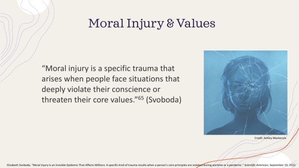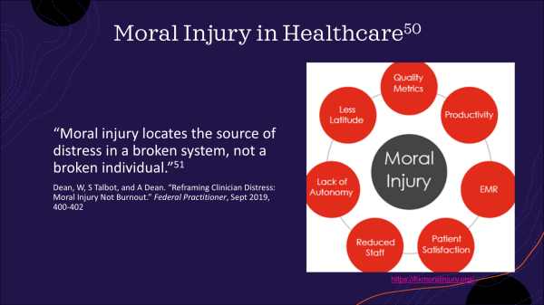 DRK: Thank you, I wasn’t aware of that issue. I will look that up. One thing I was wondering, in trying to teach this, how, how would you go about it? Is it a skill set that people can learn, that we can impart and measure? So much of medical education now is focused on objective learning goals. Or is it like a different dimension, like cultivating the heart and compassion and human connection. In other words, does one go into the work having been trained as a witnessing professional, or does one become a witnessing professional because one is open to human suffering and to look at that human suffering in a broader context than just being held within an individual in front of you in the clinic?