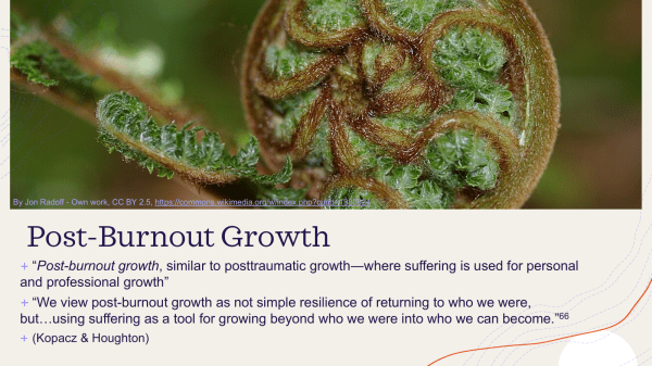 I recently had the honor of presenting at the University of Illinois College of Medicine Well-Being Wednesday series and I’d like to share my slides on my evolving work on Post-Burnout Growth.