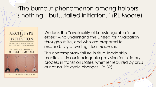 I use the concept of “soul loss” as a metaphor for burnout and compassion fatigue – for the costs of caring. How do we recover our souls when we feel we are losing them – as individuals and as a country? We have to search, we have to be still, we have to go into the darkness – our own and that of our times. As Michael Mead writes in Awakening the Soul: