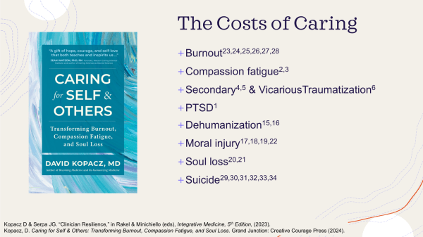 Kopacz, David R. Caring for Self & Others: Transforming Burnout, Compassion Fatigue, and Soul Loss. Palisade: Creative Courage Press, 2024.