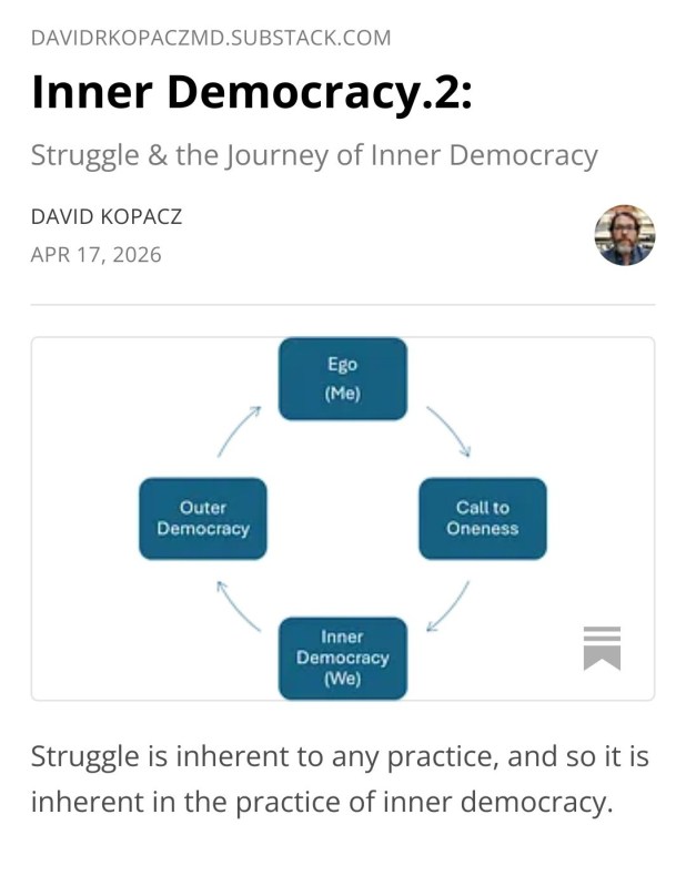One of the reasons I am excited about following this thread of Inner Democracy is that it provides a positive focus and practices that can be done irrespective of outer events in the world. In my Words Create Worlds series, I have focused more on resistance and opposition to words – uncaring words, words of Me-First, and words of fascism. Through Inner Democracy I am seeking to focus on building inner strength during difficult times. Perhaps chaotic and painful experiences in the outer world could even lead one to fall back upon practices of inner democracy. Inner democracy builds hope, resilience, post-burnout growth, post-traumatic growth. I agree with Jeremy David Engels’ view of democracy as caring and collaboration.